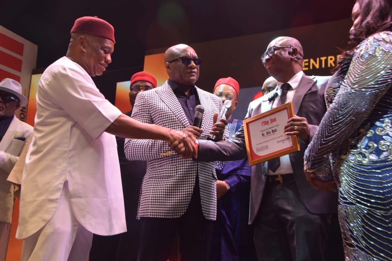 • The Presentation: He received the award from Senator Orji Uzor Kalu (Founder of Sun Newspapers) and Prof. Obiora Okonkwo (Chairman of New Nigeria Airlines).